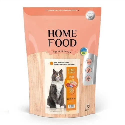 Сухий корм Home Food CAT ADULT для вибагливих кішок з куркою та лівером 1.6 кг