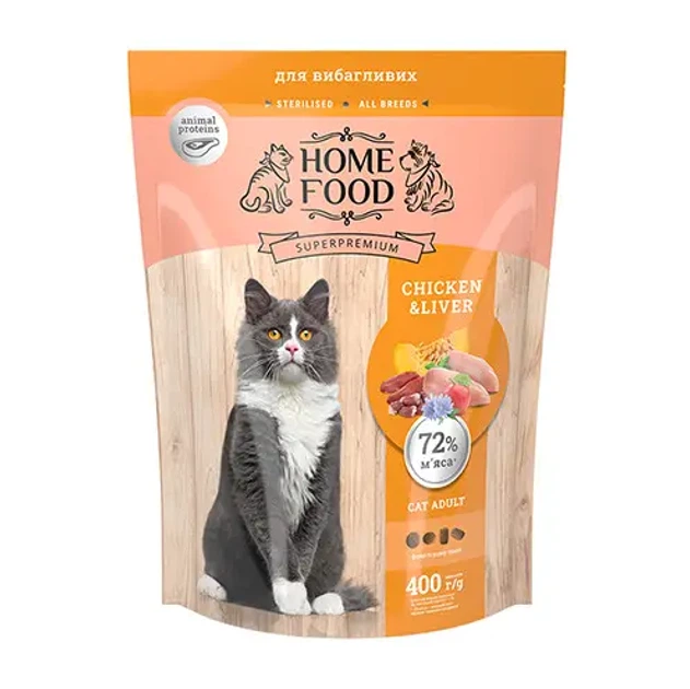 Сухий корм Home Food CAT ADULT для вибагливих кішок з куркою та лівером 400 г