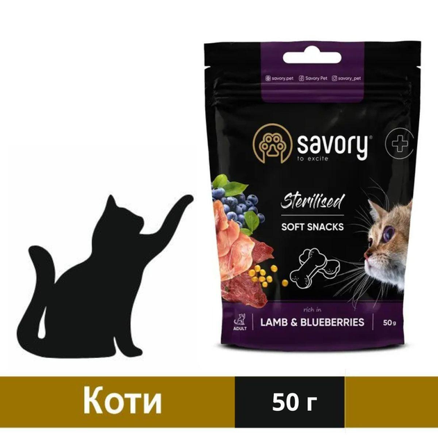 Ласощі для котів, SAVORY (Сейворі), Sterilised lamb, 50 г, (Ягня, чорниця)