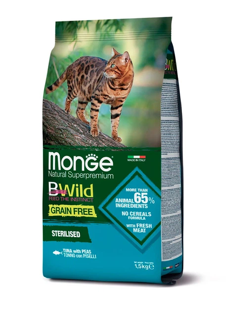 Сухий корм для котів Monge Cat Bwild Grain Free Sterilised тунeць 1,5 Кг