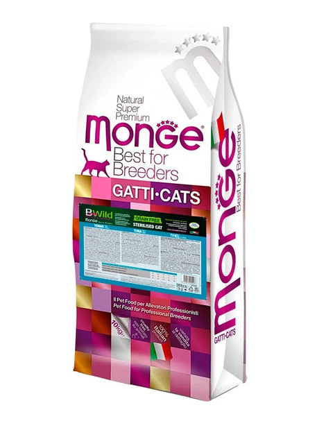 Сухий беззерновий корм Monge Cat Bwild GRAIN FREE для стерилізованих котів зі смаком тунця 10 кг
