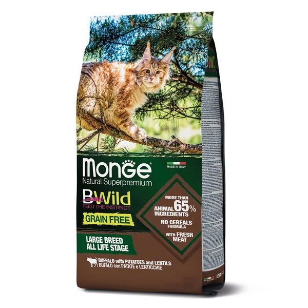 Беззерновий сухий корм для котів Monge Cat Bwild Grain Free Dry буйвол (для кішок великих порід з 2-х місяців) 10кг (7000496