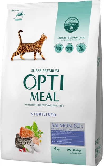 Сухий корм для стерилізованих кішок Optimeal Cat Adult Sterilised Salmon з лососем 4 кг