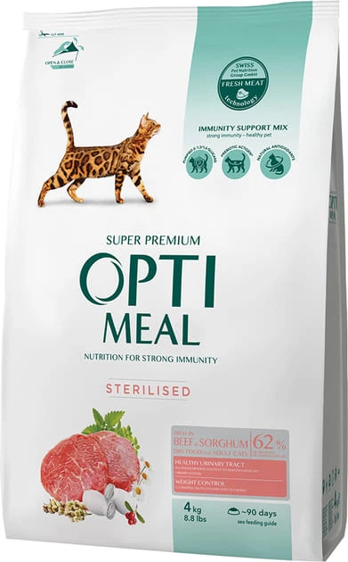 Сухий корм для стерилізованих кішок Optimeal Cat Adult Sterilised Beef з яловичиною 4 кг