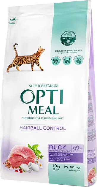 Сухий корм для котів для виведення шерсті Optimeal Cat Adult Duck Hairball Control з качкою 10 кг