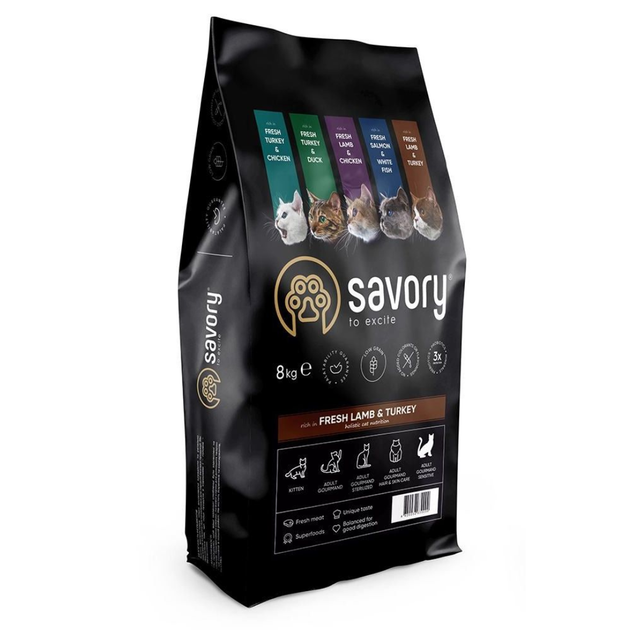 Savory Adult Cat Sensitive Digestion Fresh Lamb & Turkey 8 кг сухий корм для котів з чутливим травленням