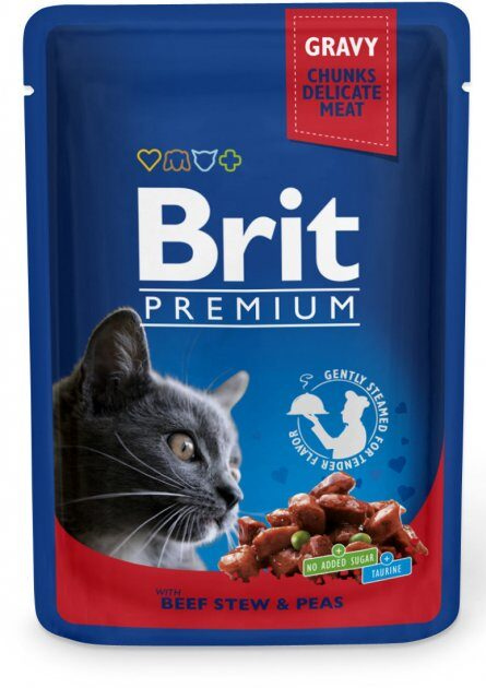 Вологий корм для котів Brit Premium Cat Beef Stew & Peas pouch з тушеною яловичиною та горошком 100 г