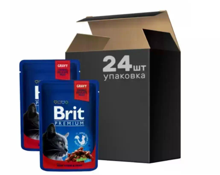 Блок вологих кормів Brit Premium Cat Beef Stew & Peas pouch для котів, з тушеною яловичиною та горошком, 24 шт х 100 г (8595