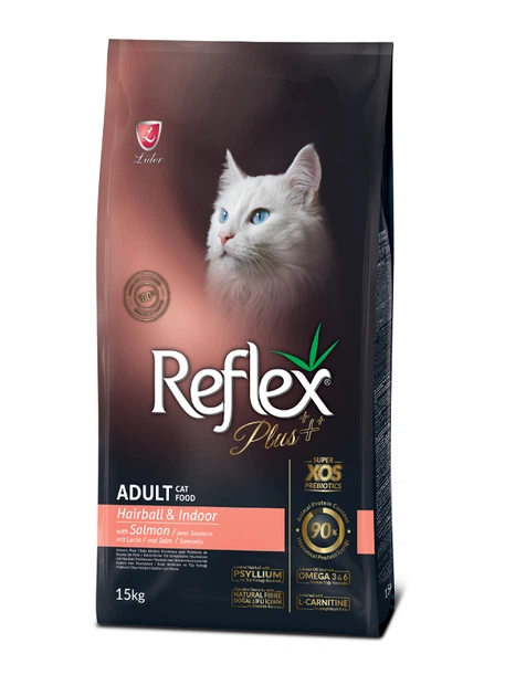 Сухий корм Reflex Plus Adult Hairball & Indoor для котів, що живуть у приміщенні та виведення шерсті з лососем 15 кг