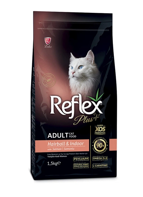 Сухий корм Reflex Plus Adult Hairball & Indoor для котів, що живуть у приміщенні та виведення шерсті з лососем 1.5 кг