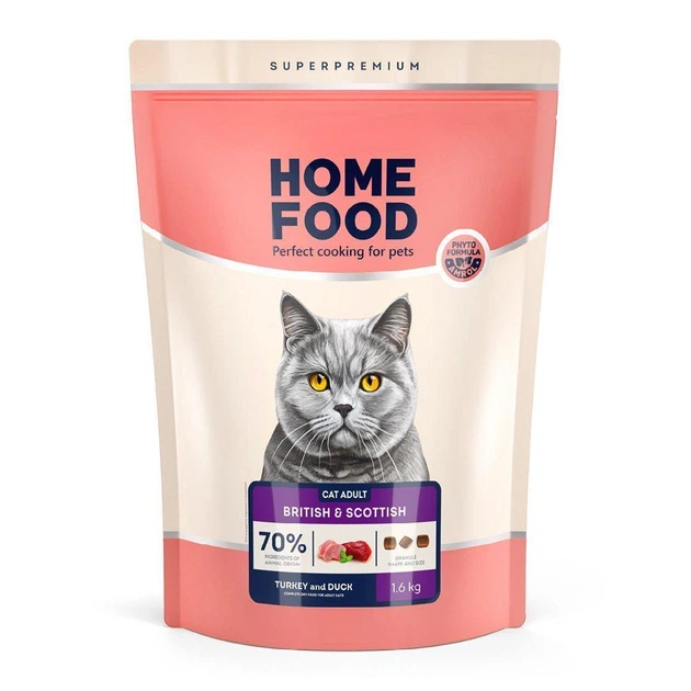 Сухий корм Home Food Adult Cat з індичкою та качкою для котів британських та шотландських порід, 1,6 кг
