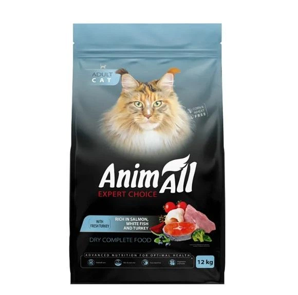 Повнораціонний сухий корм Animall Анімал для дорослих котів з лососем, білою рибою та свіжою індичкою, 12 кг