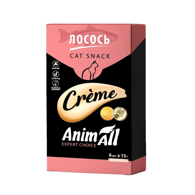 Рідкі ласощі для котів AnimAll Cat Snack Creme з лососем (6 стіків х 15 г) (4820224502373)