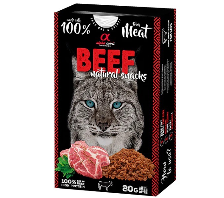 Ласощі для котів з яловичиною Alpha Spirit Cat Natural Snack Beef, 80 гр