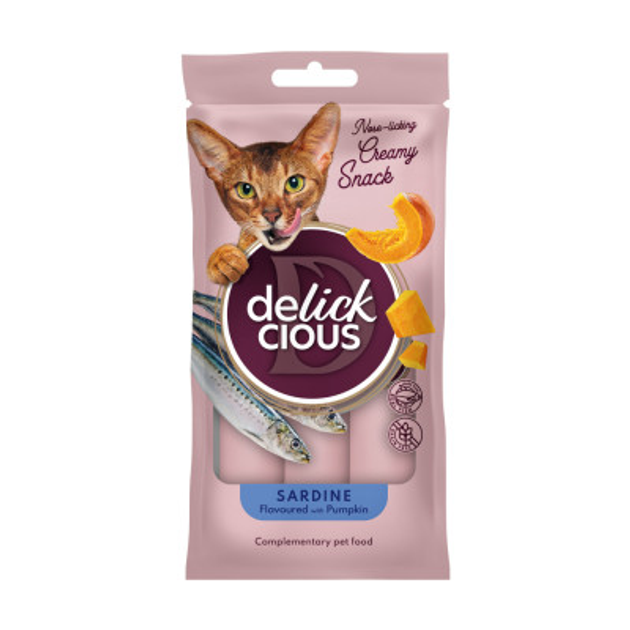 Ласощі для котів Delickcious Сардіна з додаванням гарбуза 4 х 15 г (4820269141636)