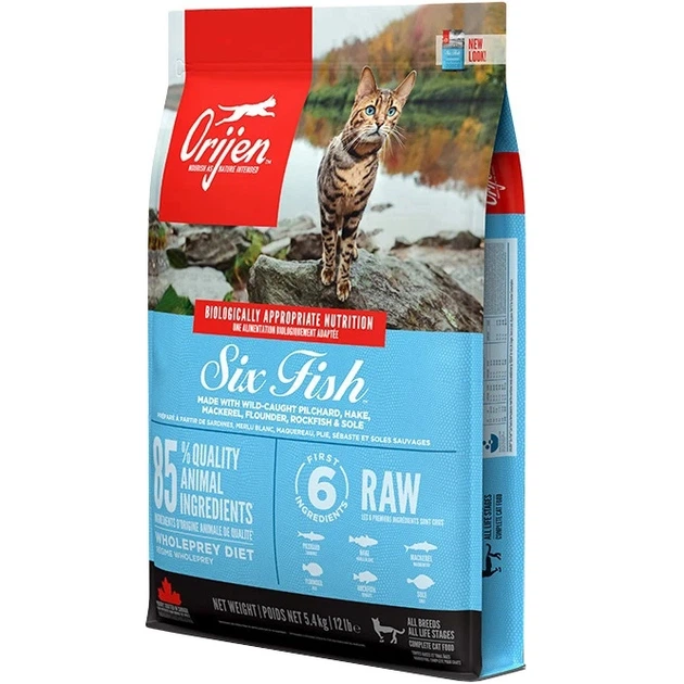 Сухий корм ORIJEN 6 Fish Cat and Kitten 5,4 кг, для кішок всіх порід та вікових груп, сардина, хек, макрель, камбала, оселед