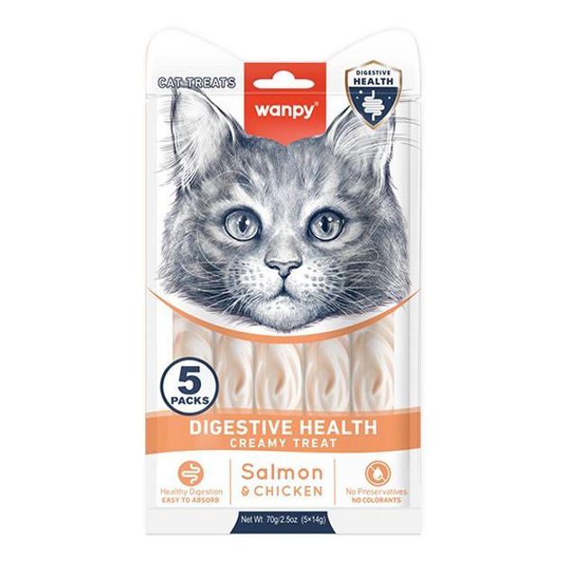 Ласощі для котів Wanpy 70 г з лососем та куркою для підтримки здорового травлення
