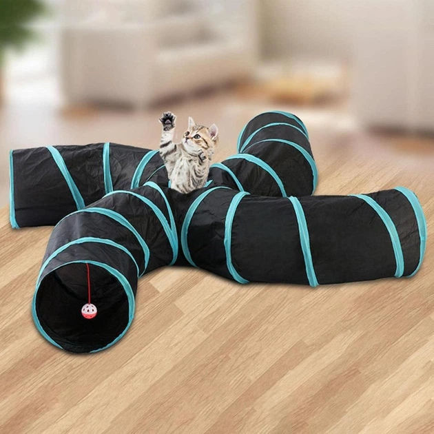 Тонель для кішок складаний 4-х сторонній ігровий тунель з іграшкою для котів