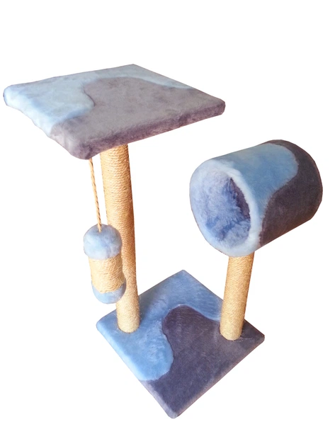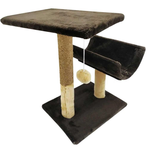 Дряпка стовбчик на підставці з полицею і напівтунелем 30*38*50 см Пухнастики шоколад/беж (джгут)