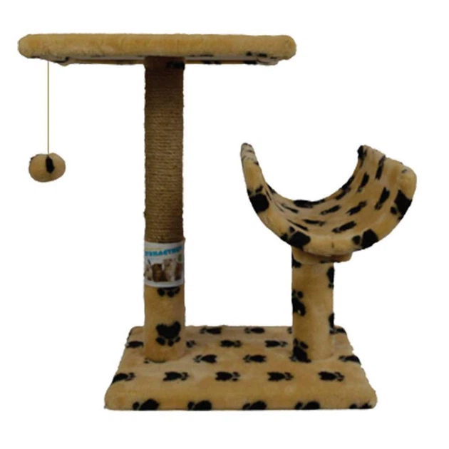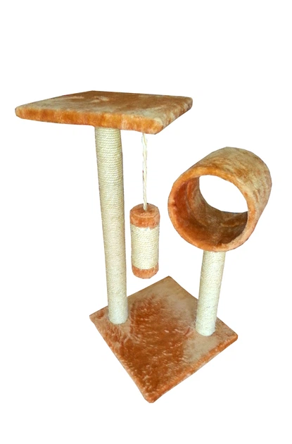 Дряпка з полицею і напівтунелем Пухнастики 30*38*50 см (бежева з лапками)