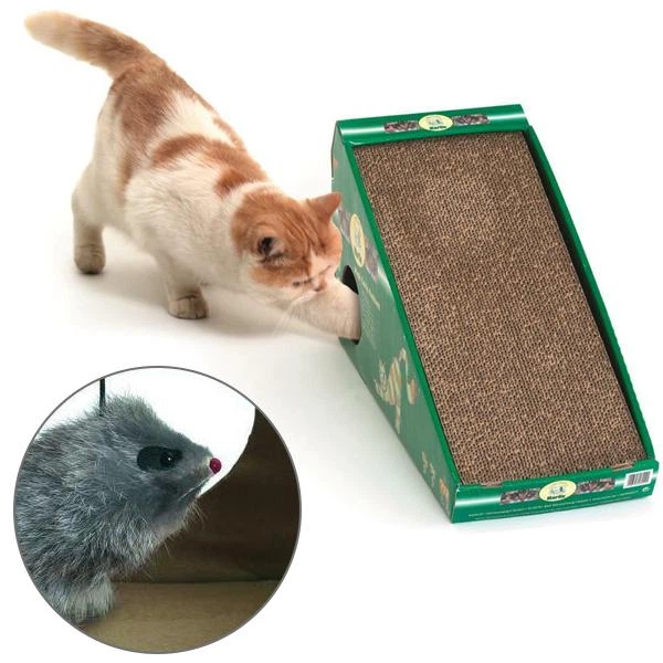 Flamingo scratching board нахилена когтеточка для котів з котячою м'ятою та хутряною мишкою 59х21х32 см