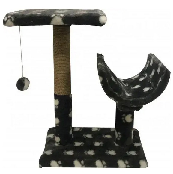 Когтеточка з диваном і полицею Пухнастик (джут) 30*38*50 см (сіра з лапками)