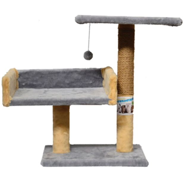 Кігтеточка для котів розмір 30х38х50 см з диваном 2-х поверхова сірий з бежевим
