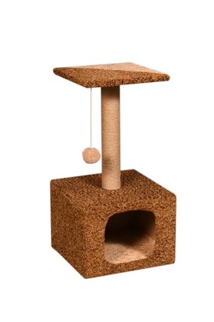Будиночок когтеточка для кота дряпка для кішки Мур-Мяу котедж 34x34x67 см в сизалевій мотузці Коричнево-бежевий МТК