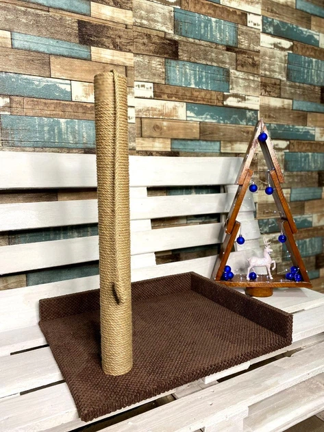 Кігтеточка підлогова коричнева з широкою лежанкою на підлозі 62х55х45 см