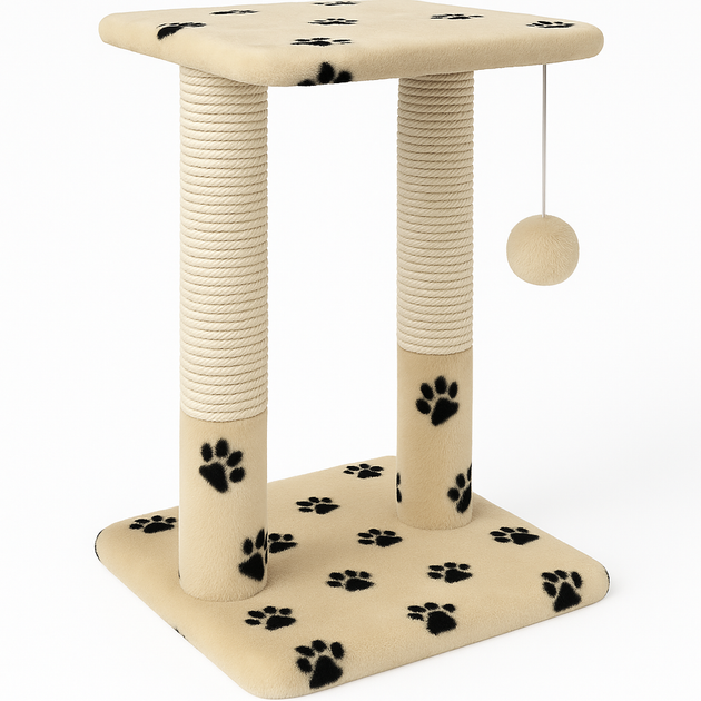Когтеточка для котів PolyPet подряпка-арка квадрат бежевий з чорними лапками 43x43x65 см КРД/0022-12