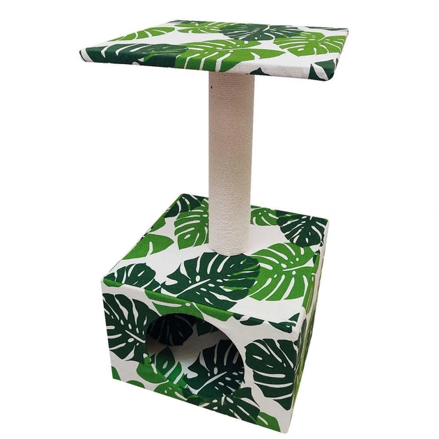 Кігтеточка будиночок з полицею Croci Green Leaves Cave 30*30*55 см (зелене листя)