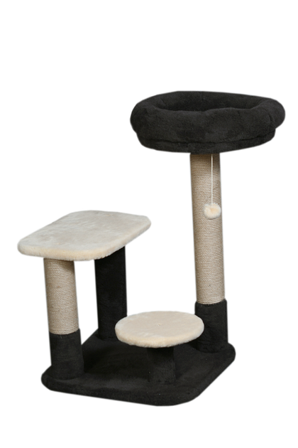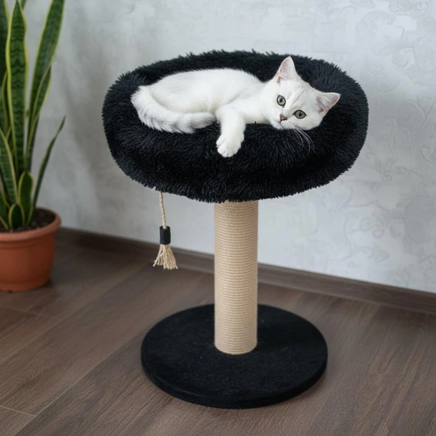 Кігтеточка стійка з теплою лежанкою пончиком для кішки котят 68х55х55см чорно бежева