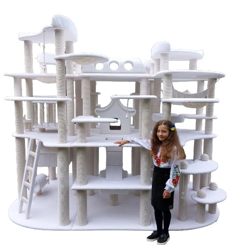 Багаторівневий ексклюзивний котячий комплекс Кардинал з хб каната для котиків та кішок 250х300х200см білий