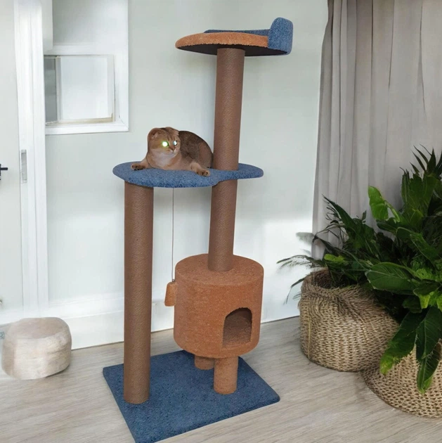 Високий комплекс для кота з будиночком когтеточка кішці Лілі 2 130х60х45см синьо бежевий