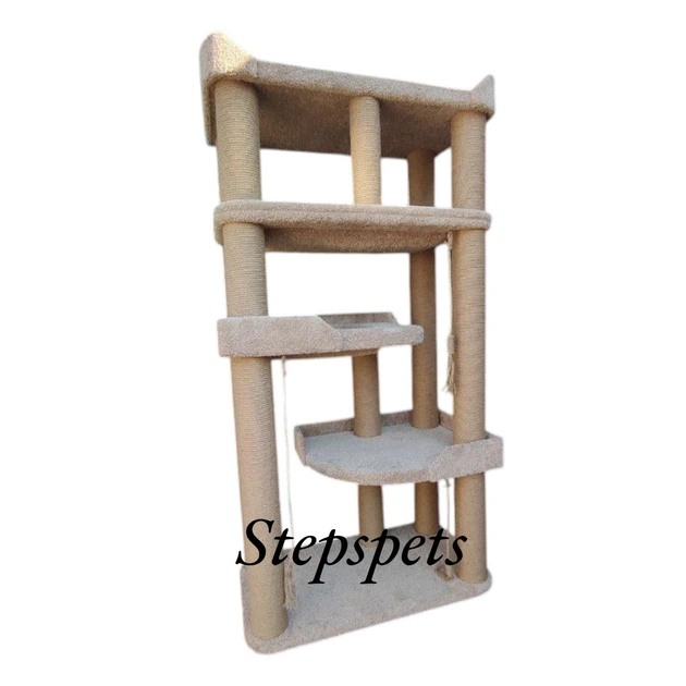 Игровий комплекс кігтедряпка бежевий з домівками, лежанками та сходинками 195*130*50 см