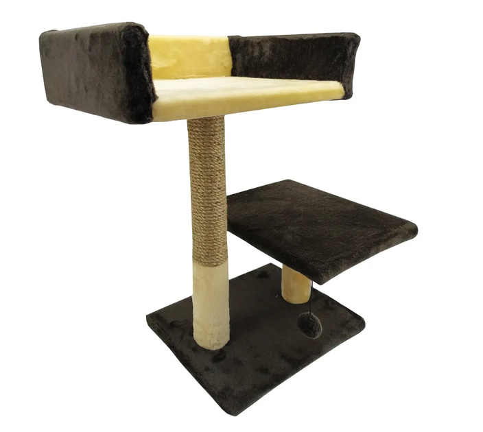 Кігтеточка "Пухнастик" з диваном 2-поверхнева шоколад із бежевим Д-5