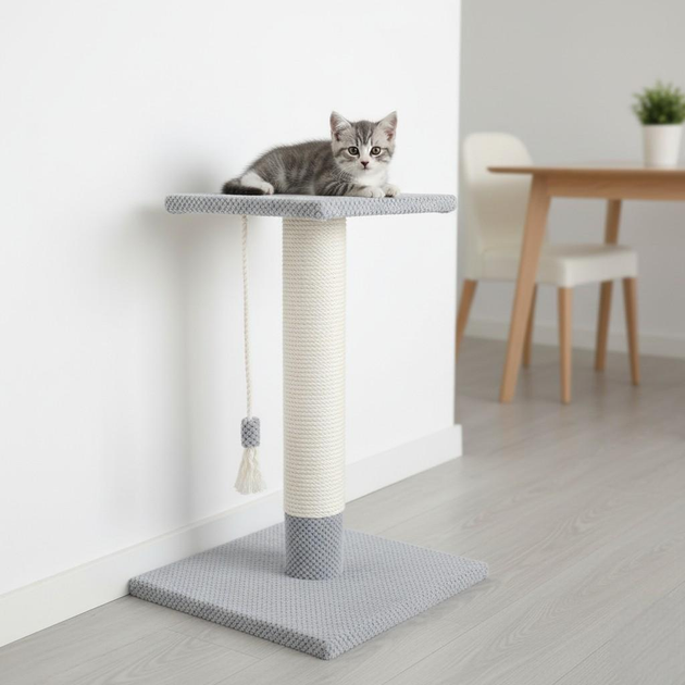 Когтеточка стовпчик з лежанкою для кота в бавовняному канаті 65см