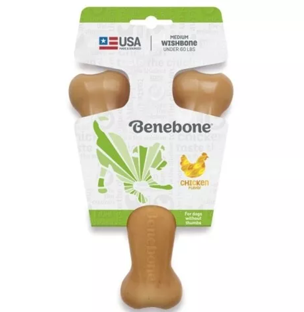 Іграшка для собак Benebone Wishbone Bacon міцна для гризіння Важіль, зі смаком курки, розмір MEDIUM (собаки до 27кг)