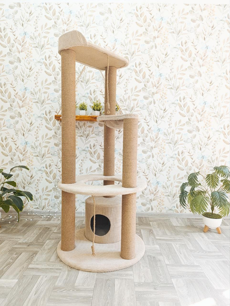 Кругла кігтеточка для котів с домівкою та лежанками 170*75 см Бежева