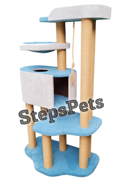 Комплекс для котика з кігтедряпкою та будиночком 100*60*185 бірюзово-сірий