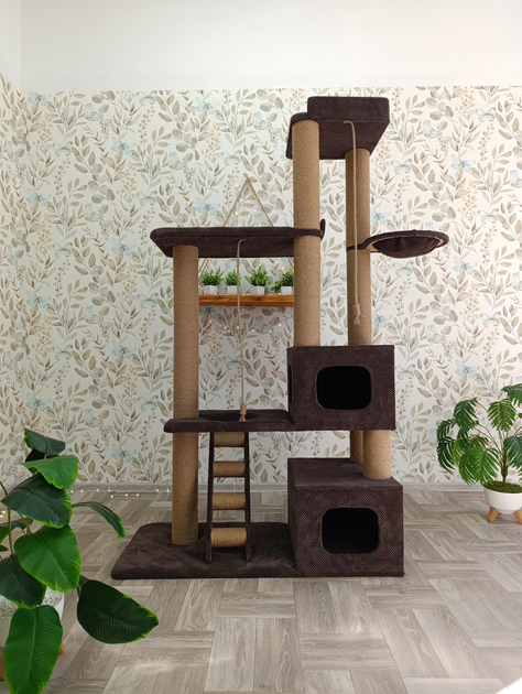 Багатофункціональний Ігровий Комплекс-Кігтеточка "Плейхаус XL" (Коричневий) 185*110*50 см