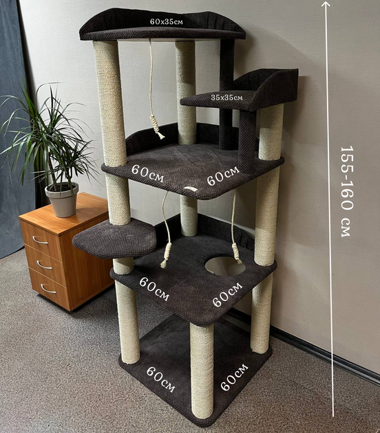 Комплекс для котика з царапками та гамаком 75*60*175 коричнево-сірий Оббивка ковралін Обмотка сизаль