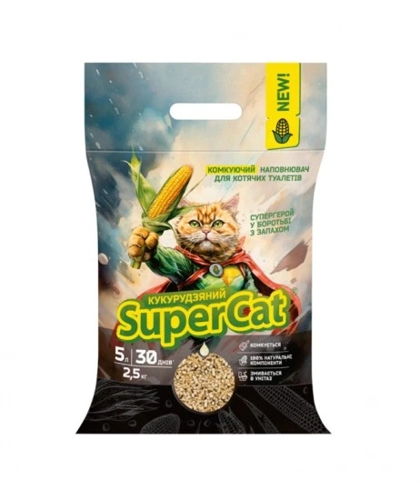 Кукурудзяний наповнювач SuperCat для котячого туалету 2.5 кг (4823089365121)