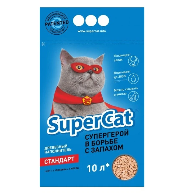 Наповнювач для котячого туалету SuperCat СТАНДАРТ Дерев'яний поглинаючий 3 кг (5 л) (3550) (4820082490201)