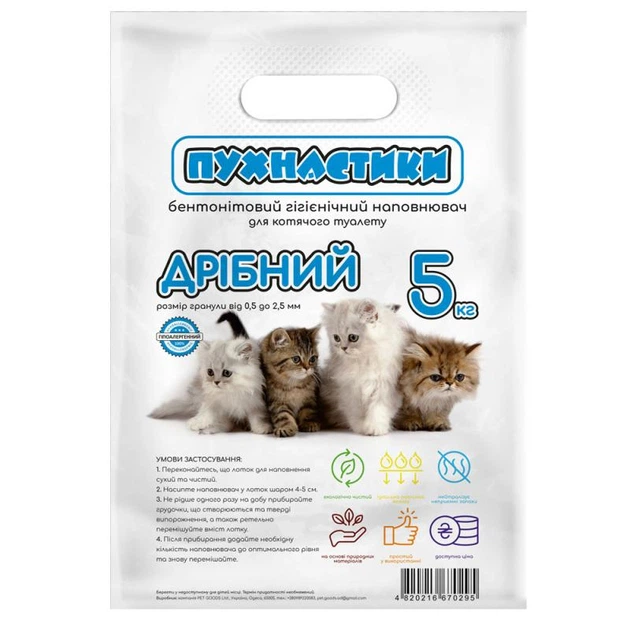 Бентонітовий наповнювач Пухнастики для котячого туалету, дрібний без аромату 5 кг
