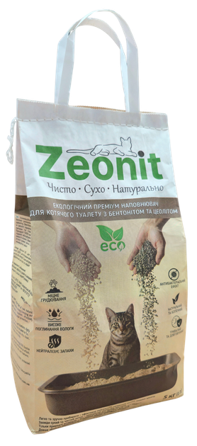 Наповнювач для котячого туалету Zeonit з Бентонітом та Цеолітом грудкуючий, антибактеріальний 5 кг (6 л)