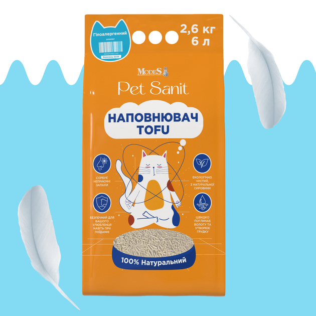 Наповнювач Tofu - гіпоалергенний 2,6 кг, 6 л, л, ПетСаніт (PetSanit), MODES