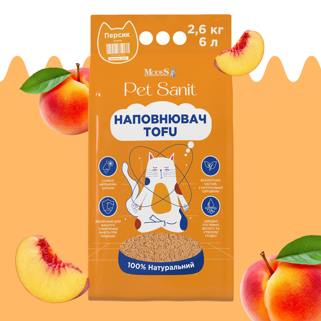 Наповнювач Tofu - персик 2,6 кг, 6 л, ПетСаніт (PetSanit), MODES