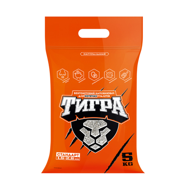 Бентонітовий натуральний наповнювач для котячих туалетів Тигра 2.5 кг гранула стандарт 1.5-2.5 мм (5202)