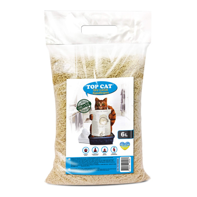 Наповнювач у котячий лоток (туалет) соєвий тофу TOP CAT TOFU UA 6 л - КЛАСИЧНИЙ (ГІПОАЛЛЕРГЕННИЙ)